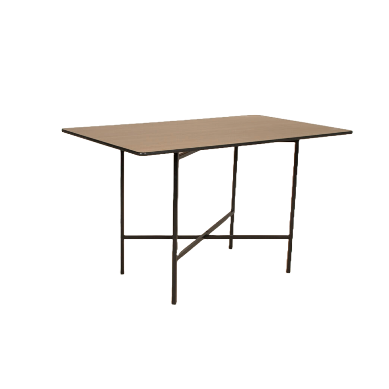 Mesa desmontável retangular base preta , tampo amadeirado