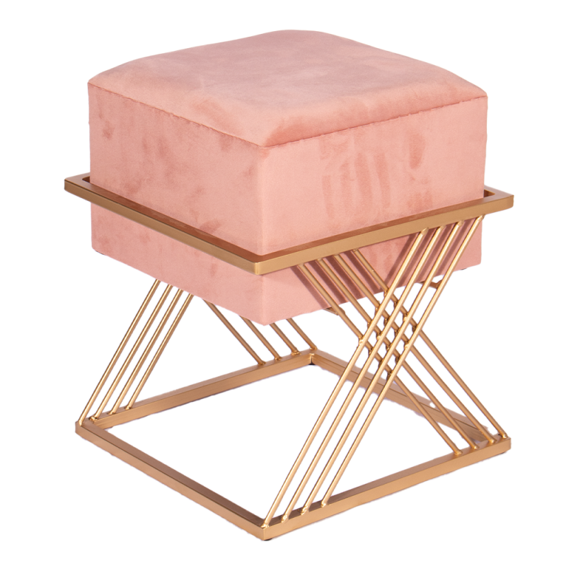 Puff Treliça rose , de base dourada